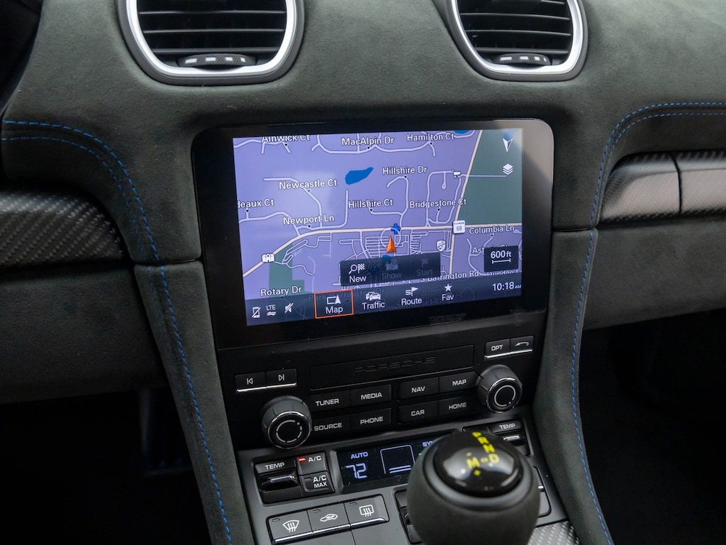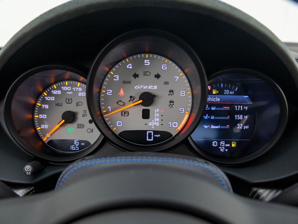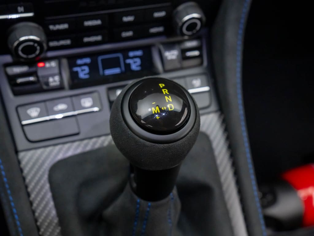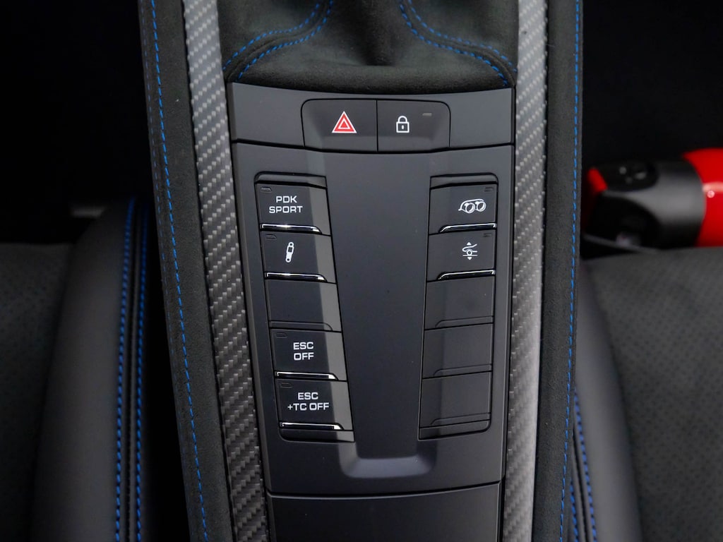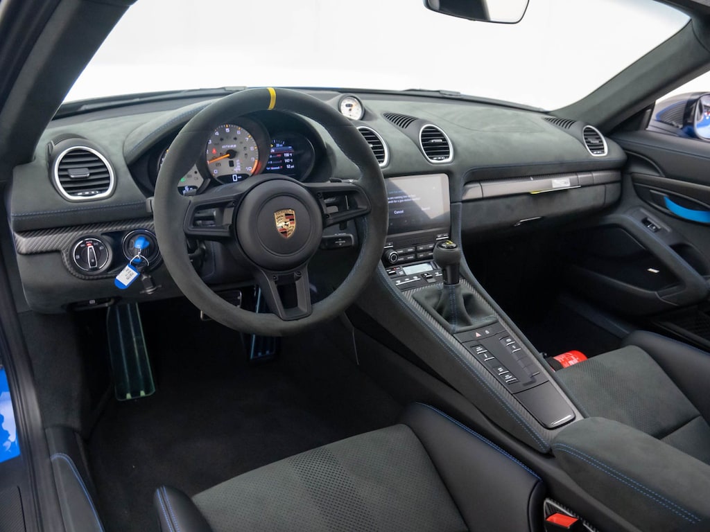 Step inside the 718 Cayman GT4 RS and you'll be greeted by a cabin that exudes sophistication and attention to detail. The two-tone leather and Race-Tex seat trim, combined with the sport steering wheel and fully digital instrument cluster, create an environment that is both driver-focused and visually stunning.
